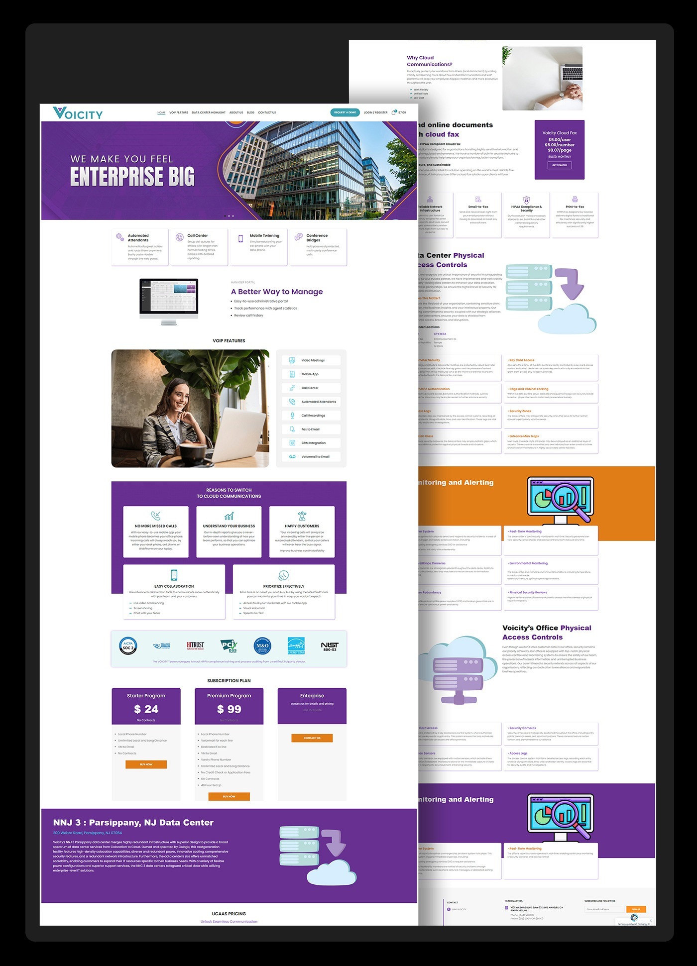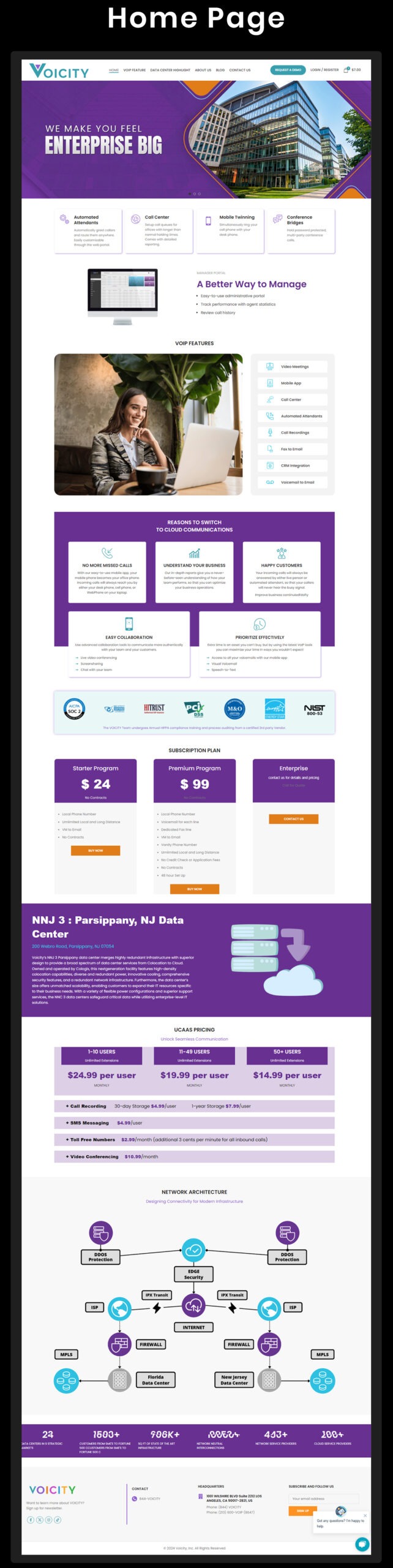 Voicity is a leading UCaaS provider continually evolving to offer the best products and services in the industry such as Cloud PBX, SMS, Chat, Video Conferencing, Screen Share and Mobility features. Our infrastructure is geo-diverse with active-active redundancy and each extension is dual-registered. We have two physical data centers in NJ and FL and two cloud hubs in Virginia and Iowa: Virginia built in Google Cloud & Iowa in AWS.